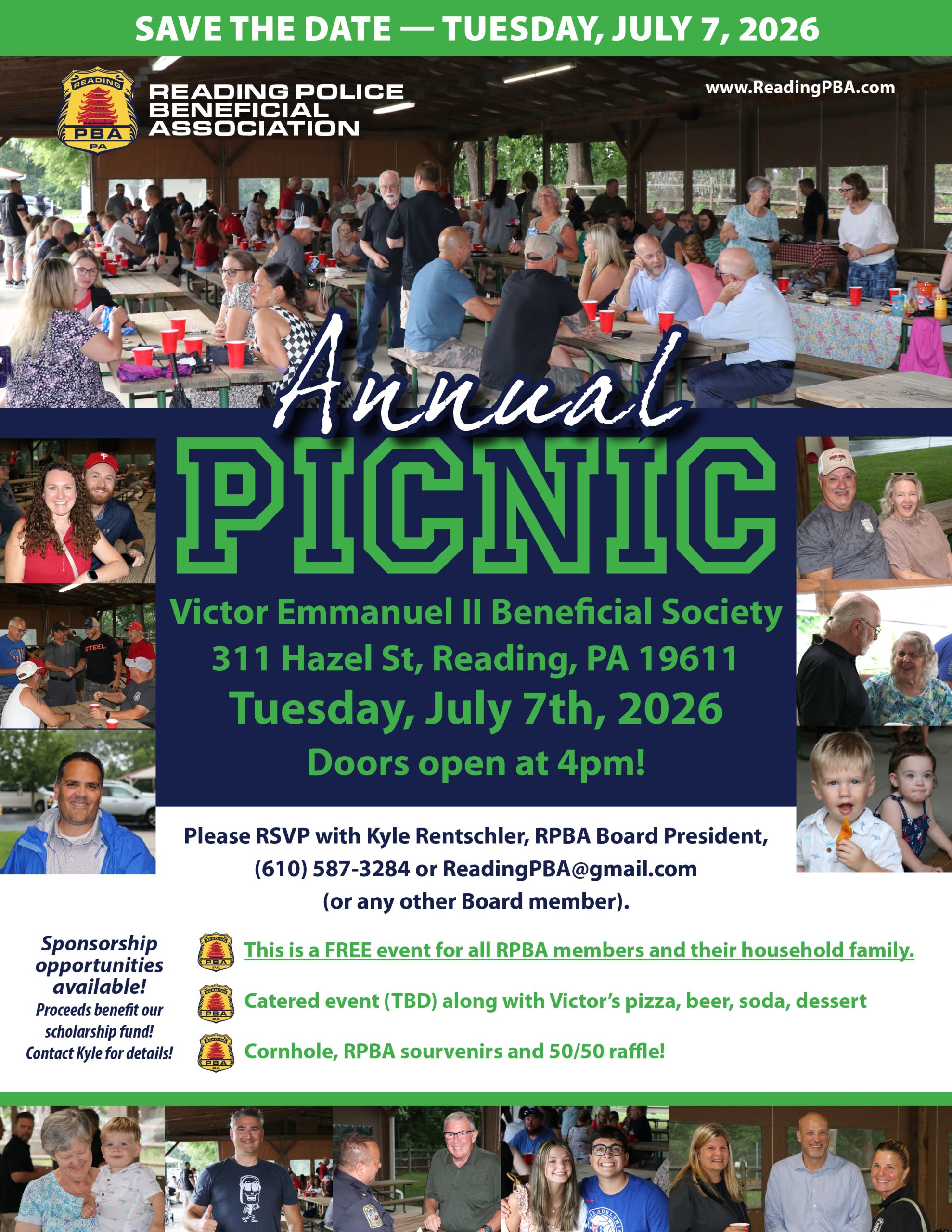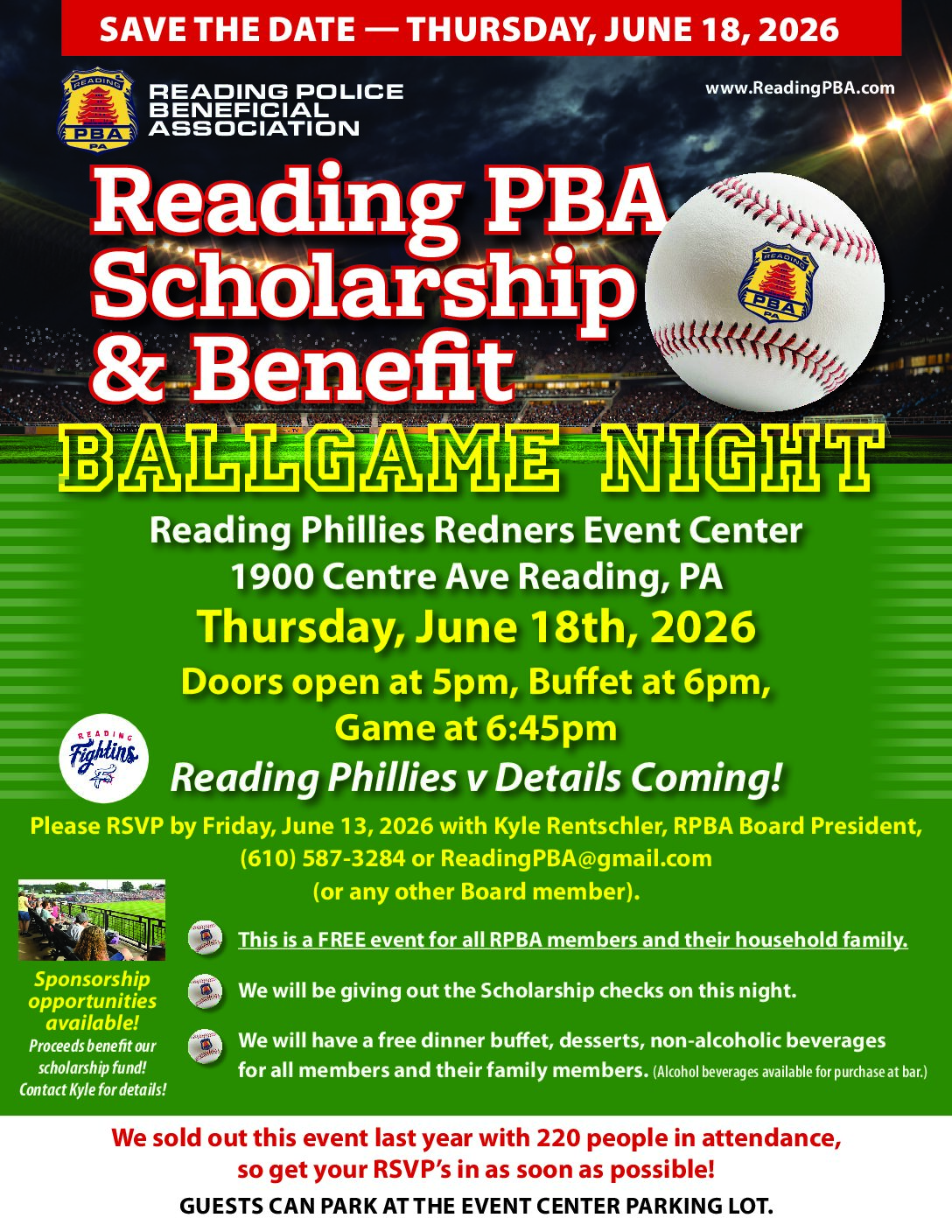The Reading PBA is in the process of putting together our 2026 Event Program which will be distributed to those attending the RPBA Awards Dinner and Game at First Energy Stadium on June 18, 2026, and our Annual RPBA Picnic which will be held later in the summer. Advertise your business or organization… or show your support as a member and friend! Click for details!